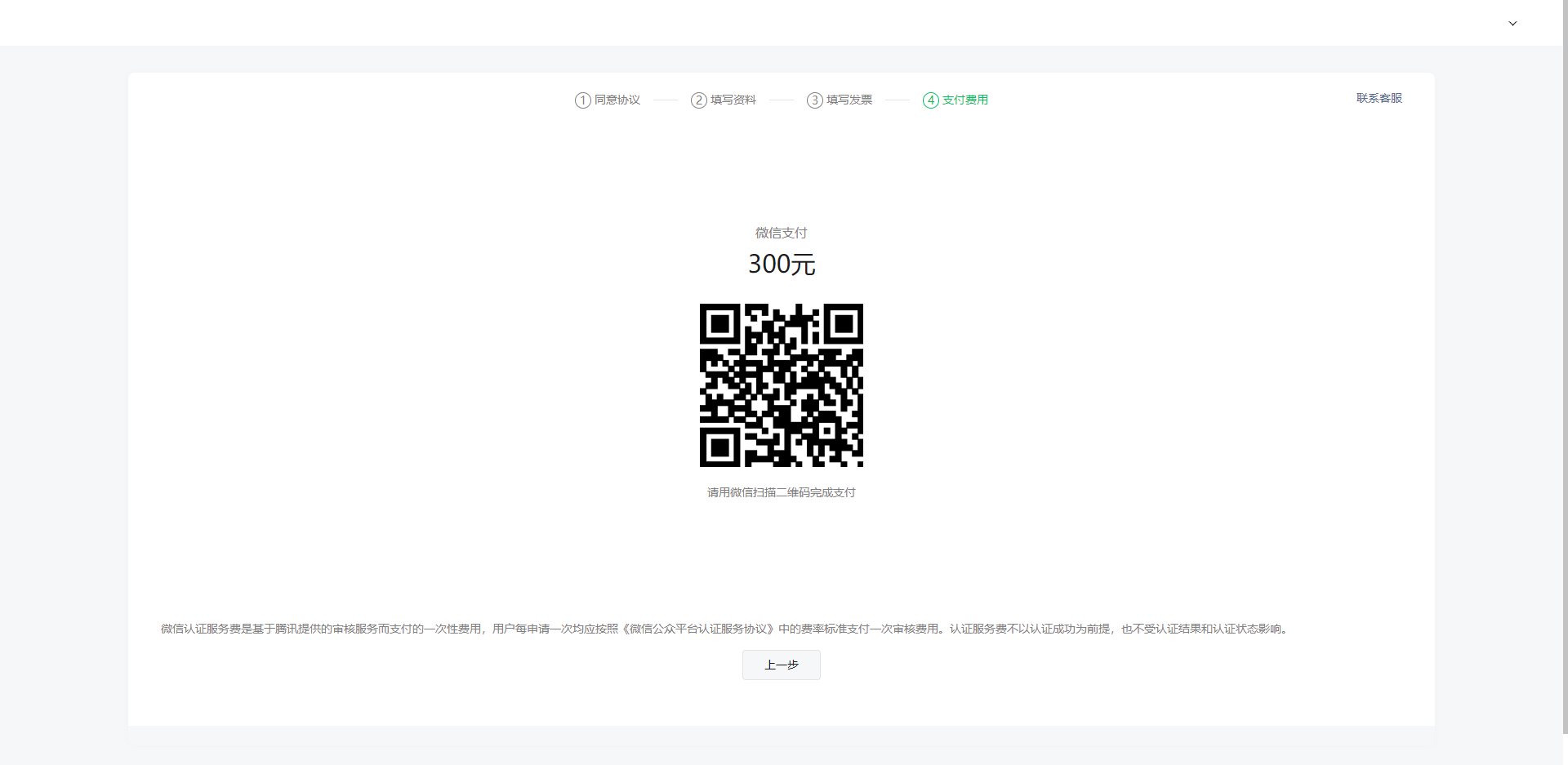 需支付300元认证费(仅微信支付),提交认证后会在1-5个工作日完成审核。微信支付过程如下: