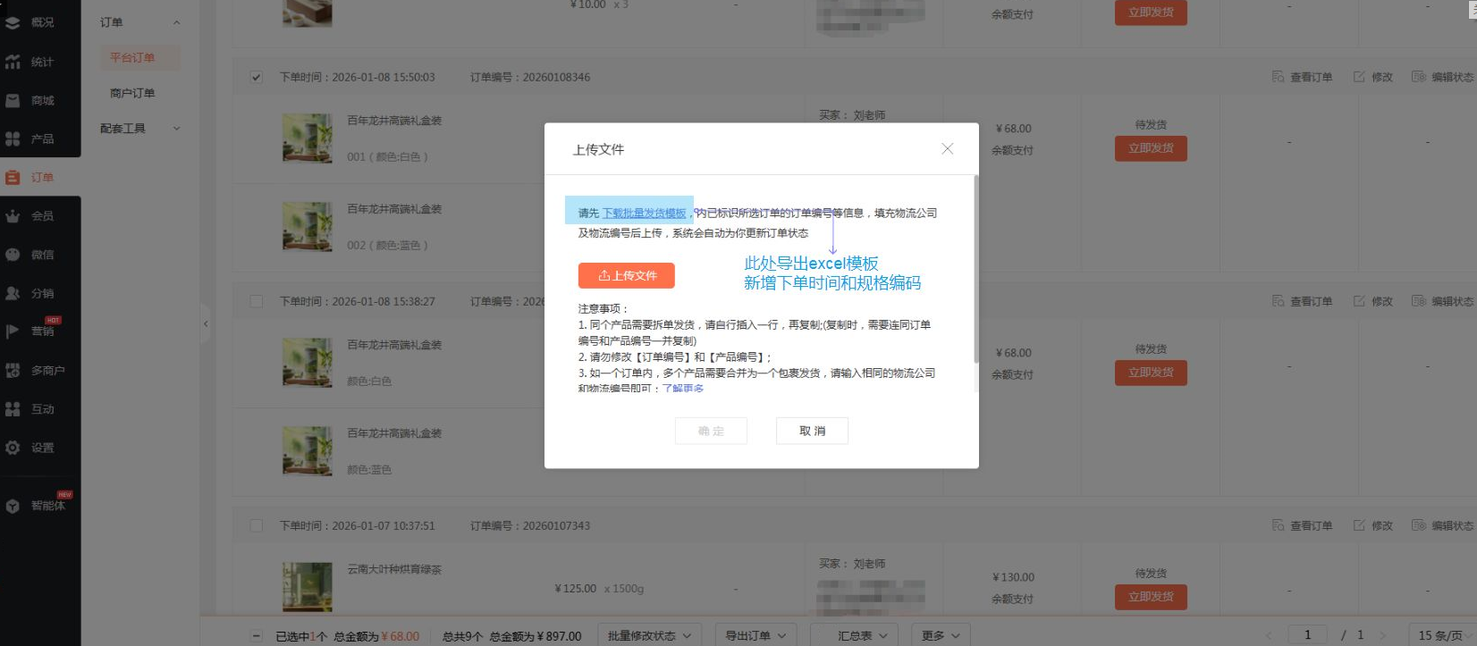 【20260204功能更新】拆单发货模板新增导出下单时间和规格编码