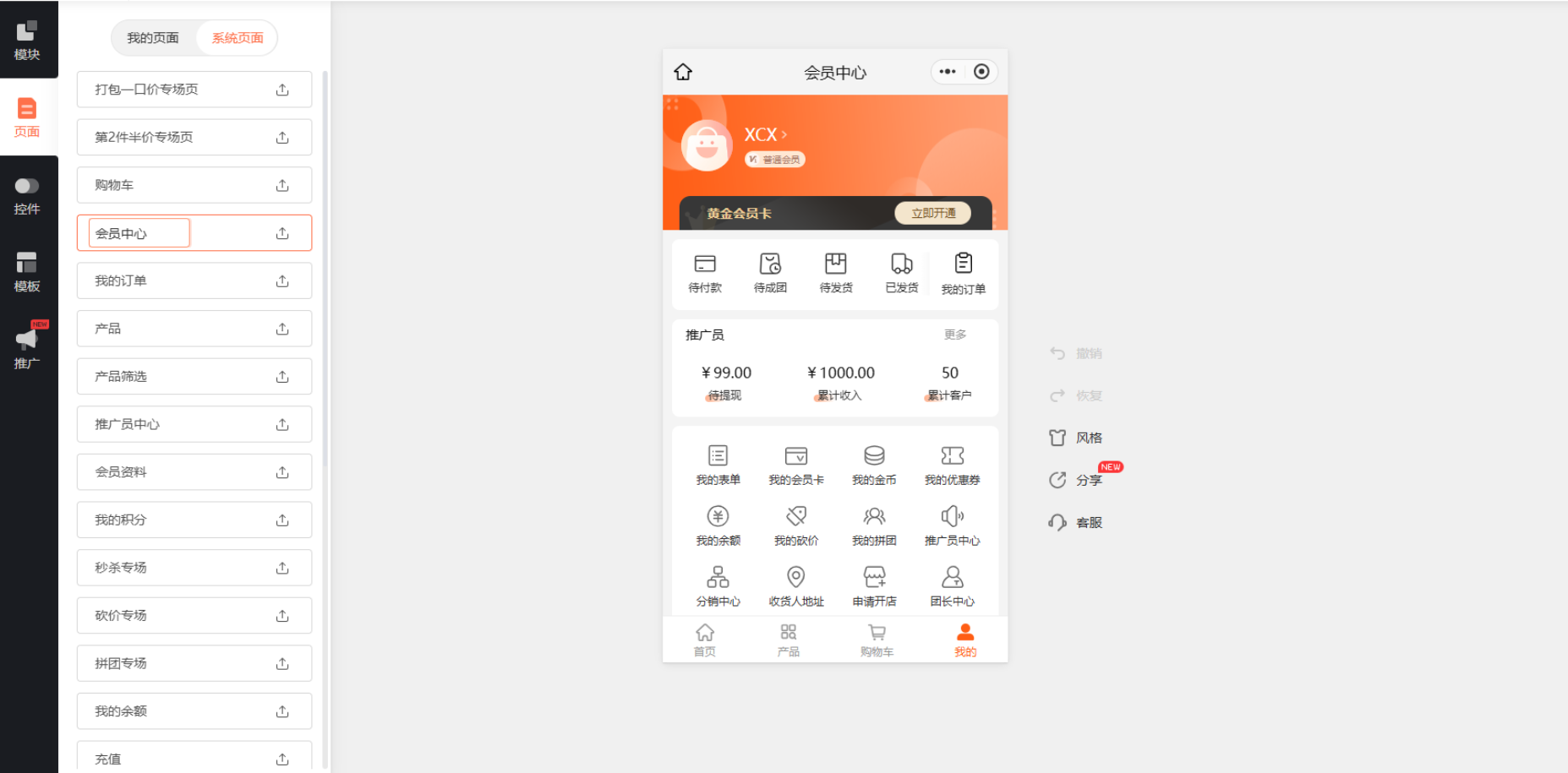 小程序装修-产品详情页:新增支持设置是否显示会员卡